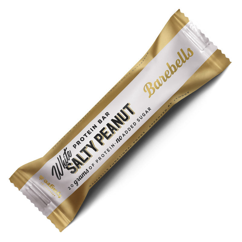 Var snäll mot naturen - återvinn denna produkt som plast. Barebells proteinbar White Salty Peanut Innehåller hela 20 gram protein Säljes i förpackning om 12x55g.